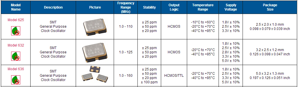 | 晶振規格參數 | 型號Model625 | |