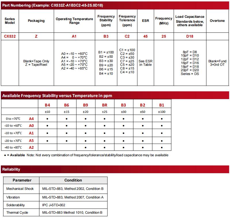 | CX532AZ-A5B2C5-70-25.0D18 | Cardinal晶振 | CX532 | 25MHz |