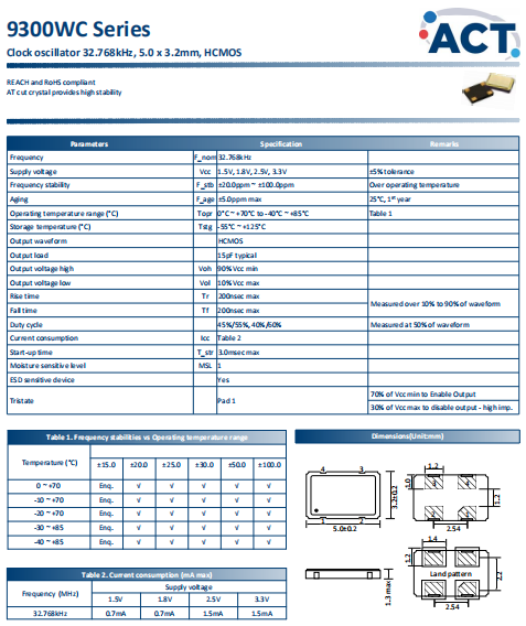 ACT晶振,9300WC晶振,SPXO有源晶振.貼片式石英晶體振蕩器,低電壓?jiǎn)?dòng)功率,并且有多種電壓供選擇,比如有1.8V,2.5V,3.3V,3.8V,5V等,產(chǎn)品被廣泛應(yīng)用于,平板筆記本,GPS系統(tǒng),光纖通道,千兆以太網(wǎng),串行ATA,串行連接SCSI,PCI-Express的SDH / SONET發(fā)射基站等領(lǐng)域.符合RoHS/無(wú)鉛.