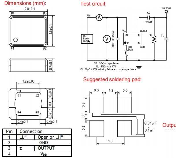 貼片2016晶振可能會在某些條件下受到損壞.例如從桌上跌落或在貼裝過程中受到?jīng)_擊.如果產(chǎn)品已受過沖擊請勿使用.