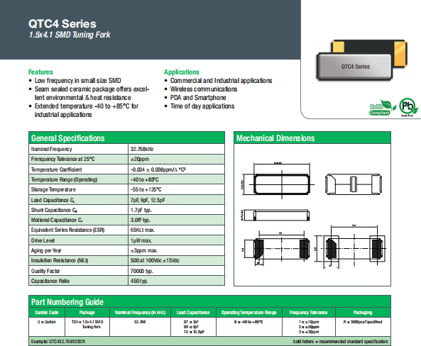 Qantek晶振,QTC4晶振,低功耗晶振.貼片晶振本身體積小,超薄型石英晶體諧振器,特別適用于有目前高速發(fā)展的高端電子數(shù)碼產(chǎn)品,因?yàn)榫д癖旧硇⌒突枨蟮氖袌鲱I(lǐng)域,小型,薄型是對(duì)應(yīng)陶瓷諧振器(偏差大)和普通的石英晶體諧振器(偏差小)的中間領(lǐng)域的一種性價(jià)比較出色的產(chǎn)品.產(chǎn)品廣泛用于筆記本電腦,無線電話,衛(wèi)星導(dǎo)航HDD,SSD,USB,Blu-ray等用途,符合無鉛焊接的高溫回流焊曲線特性.