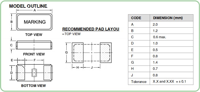 | 激勵功率 | DL | 1.0μW Max. | 推薦:100μW ~ 300μW |