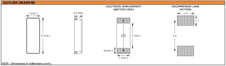 | 激勵功率 | DL | 1.0μW Max. | 推薦:100μW ~ 300μW |