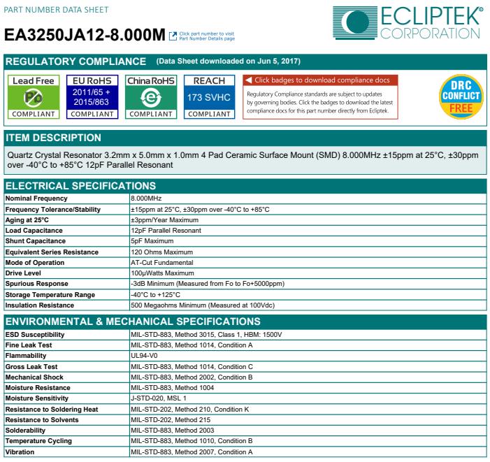 ECLIPTEK晶振將確保其振蕩器和石英晶體諧振器產品及相關設施滿足甚至超出國家的以及地方環保機構的相關法規規定及其他要求,同時該公司盡可能的參與并協助政府機關和其他官方組織從事的環?;顒? 在地方對各項設施的管理責任中,確保滿足方針的目標指標,同時在各種經營與生產活動中完全遵守并符合現行所有標準規范的要求.ECLIPTEK晶振,EA3250JA12-8.000M晶振,智能手機晶振.