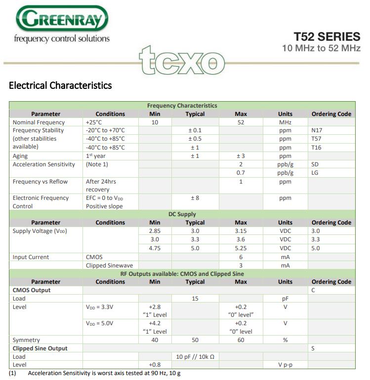 T52-N17-C-3.3-LG-20.0MHz-E,低相噪晶振,6G基站晶振參數(shù)表