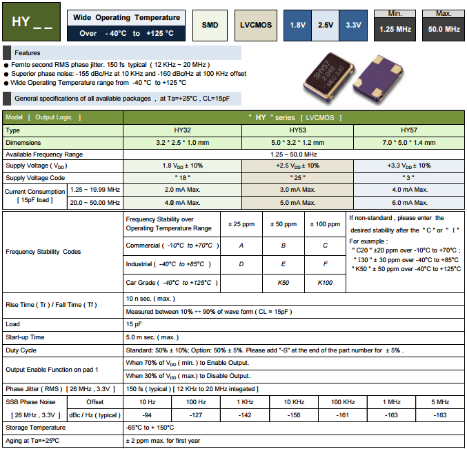 MERCURY晶振,有源晶振,HY32晶振,小體積有源晶體振蕩器.3225mm體積非常小的SMDcrystal器件,是民用小型無線數碼產品的最佳選擇,小體積的晶振被廣泛應用到,手機藍牙,GPS定位系統,無線通訊集,高精度和高頻率的穩定性能,非常好的減少電磁干擾的影響,是民用無線數碼產品最好的選擇,符合RoHS/無鉛.
