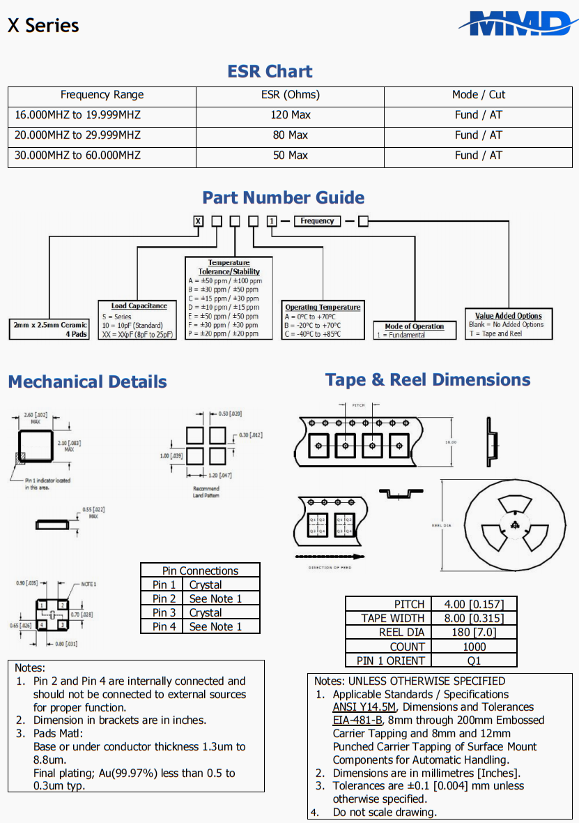| X20AB1-16.000MHZ-T | MMD | X | -20°C ~ 70°C | 16 MHz | ±100ppm | ±50ppm | 20 pF |