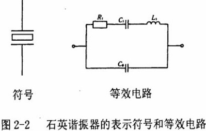 石英諧振器的表示符號和等效電路如圖2-2所示。其中L1為串聯等效電感,C1為串聯等效電容,R1為串聯等效電阻,Co為靜態電容。當石英諧振器沒有振動時,就可以等效成一個平板電容。其電容容量則取決于石英晶片的幾何尺寸和涂敷的金屬電極的尺寸。