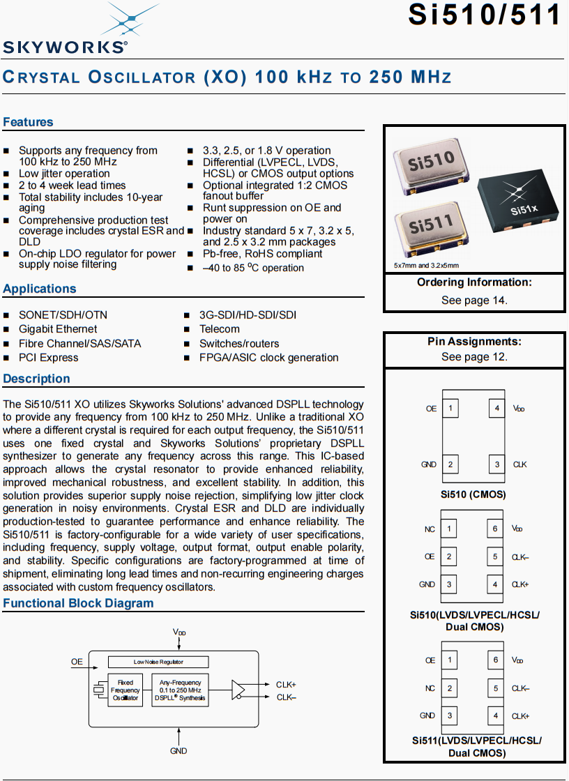 | 510MCB125M000BAG | Skyworks晶振 | Si510 | XO | 125 MHz | CMOS | 3.3V | ±20ppm |