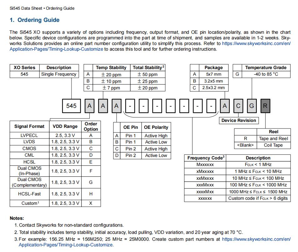 | 545AAA125M000BAG | Skyworks晶振 | Si545 | 125 MHz | LVPECL | 2.5V, 3.3V | ±20ppm |