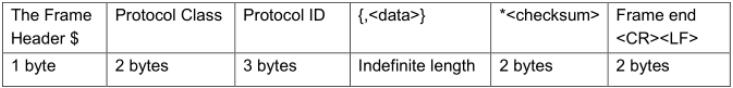 協議類別:2個ASCII字符,例如'GP'(0x47 0x50)