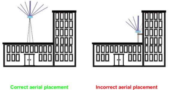 為了獲得最佳性能,請選擇海上圓頂型天線。天線與時鐘模塊之間的連接電纜應小于10m。如下圖所示,天線應放置在空曠的地方,以幫助時鐘模塊找到衛星信號,否則可能會影響時鐘模塊的性能甚至正常工作狀態。