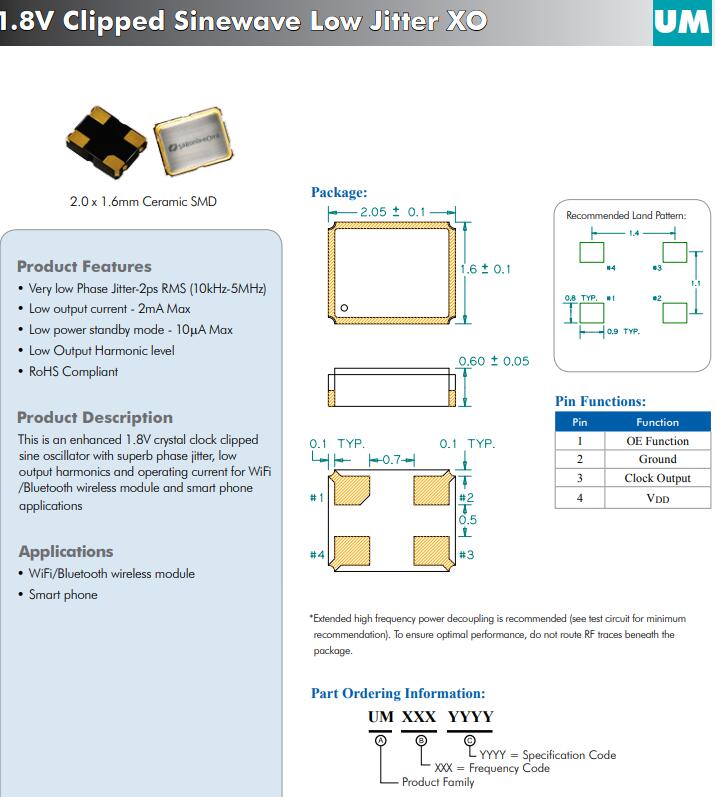 這是一個(gè)增強(qiáng)的1.8V水晶時(shí)鐘剪接正弦有源晶體振蕩器具有高超的相位抖動(dòng),低輸出諧波和工作電流為WiFi/藍(lán)牙無(wú)線模塊和智能手機(jī)應(yīng)用程序