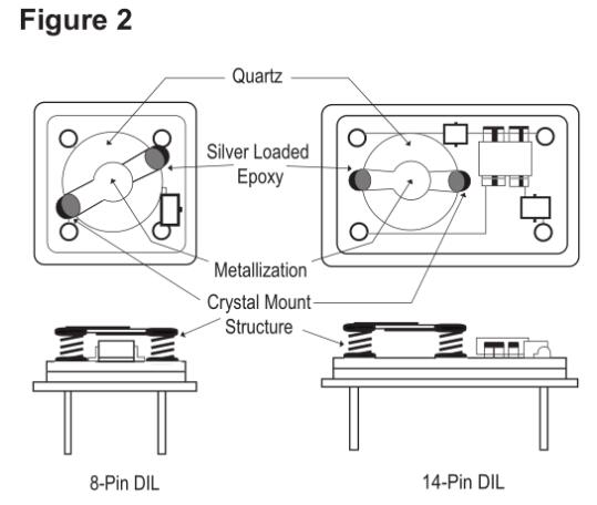 石英晶體單元包括一小條石英帶或一盤石英,根據用戶指定的諧振頻率,將其加工成確切的尺寸和厚度。石英鍍有導電電極,并安裝在密封的保護罩中(見圖1)。