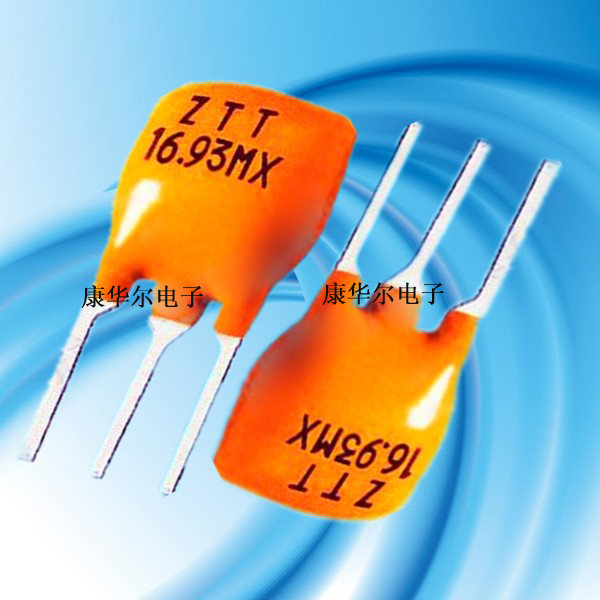 生產的陶瓷諧振器 ZTT系列是在原有的ZTA晶振內部添加了內置負載電容,引線腳于原來的二腳演變成三腳直插式,這樣一來減去了外部線路設計時可以省去電容部分,大大減少了線路空間,且可減少元器件的數量,增加穩定性,減小尺寸,為電路設計者們提供了非常的方便,并且外形尺寸也沒有太大的改變。此規格的頻率范圍在 2.0 MHz 至 60.00 MHz,頻率公差為 ±0.5%,±0.3%。