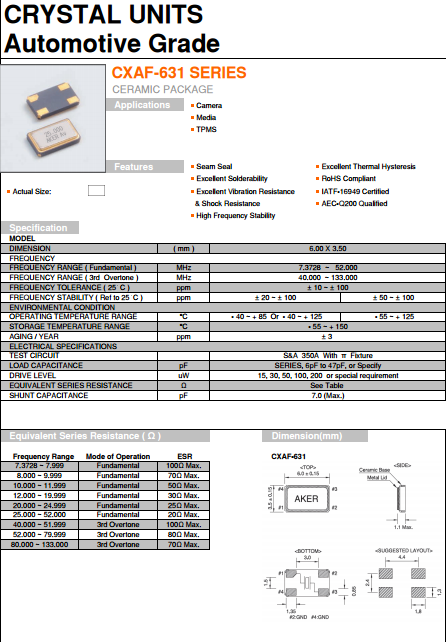 首頁(yè)臺(tái)產(chǎn)晶振AKER晶振,安碁諧振器,CXAF-631水晶振子